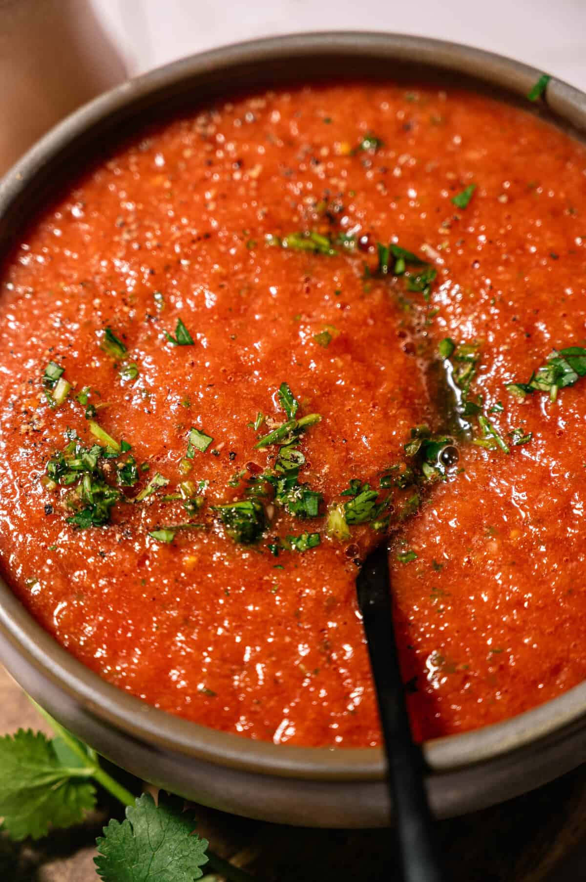 This salsa is meant to be blended, which means you control the texture. Want it chunkier? Pulse just a few times. Like it smooth and pourable? Blend longer.