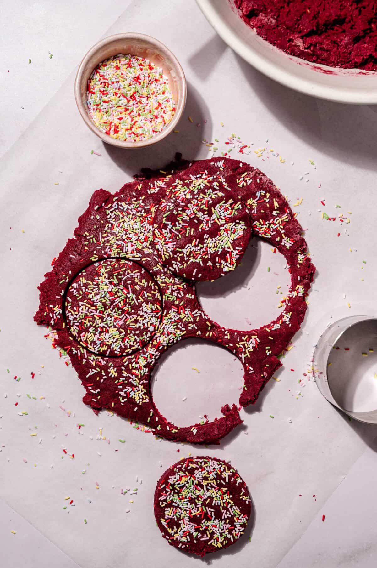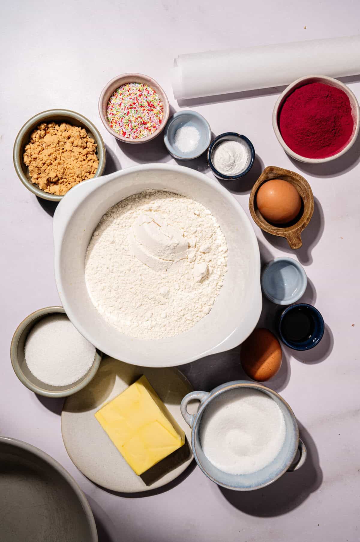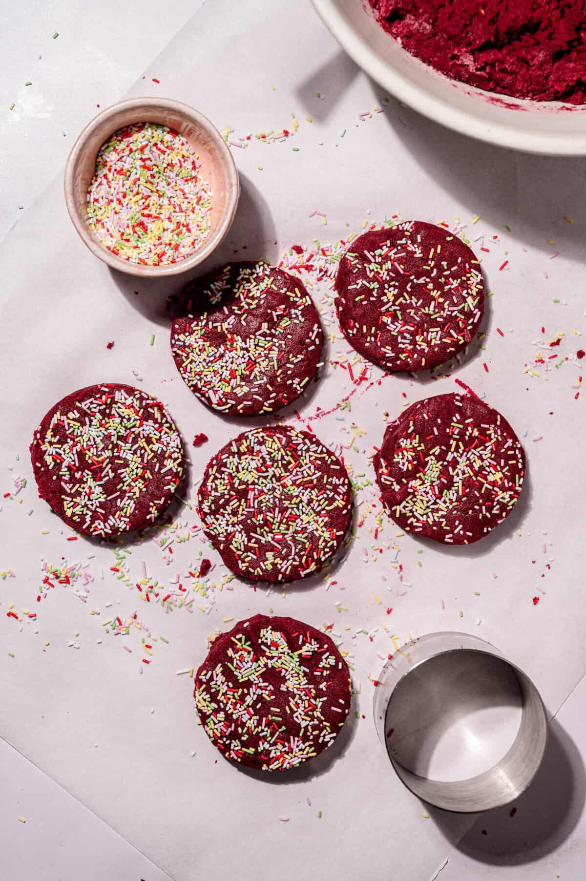 These cookies cut beautifully with cookie cutters, hold their shape, and bake up with the prettiest color. Perfect for Valentine’s Day baking, birthdays, baby showers, or just for fun in the kitchen with the kids.