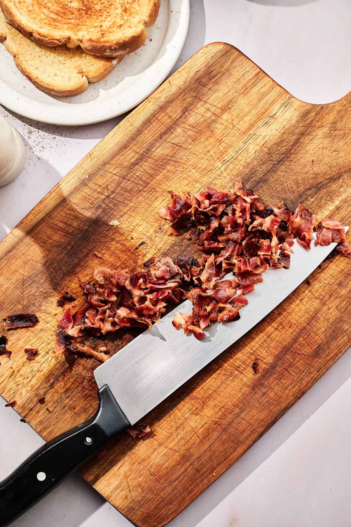 - Chop the cooked bacon into small bits.