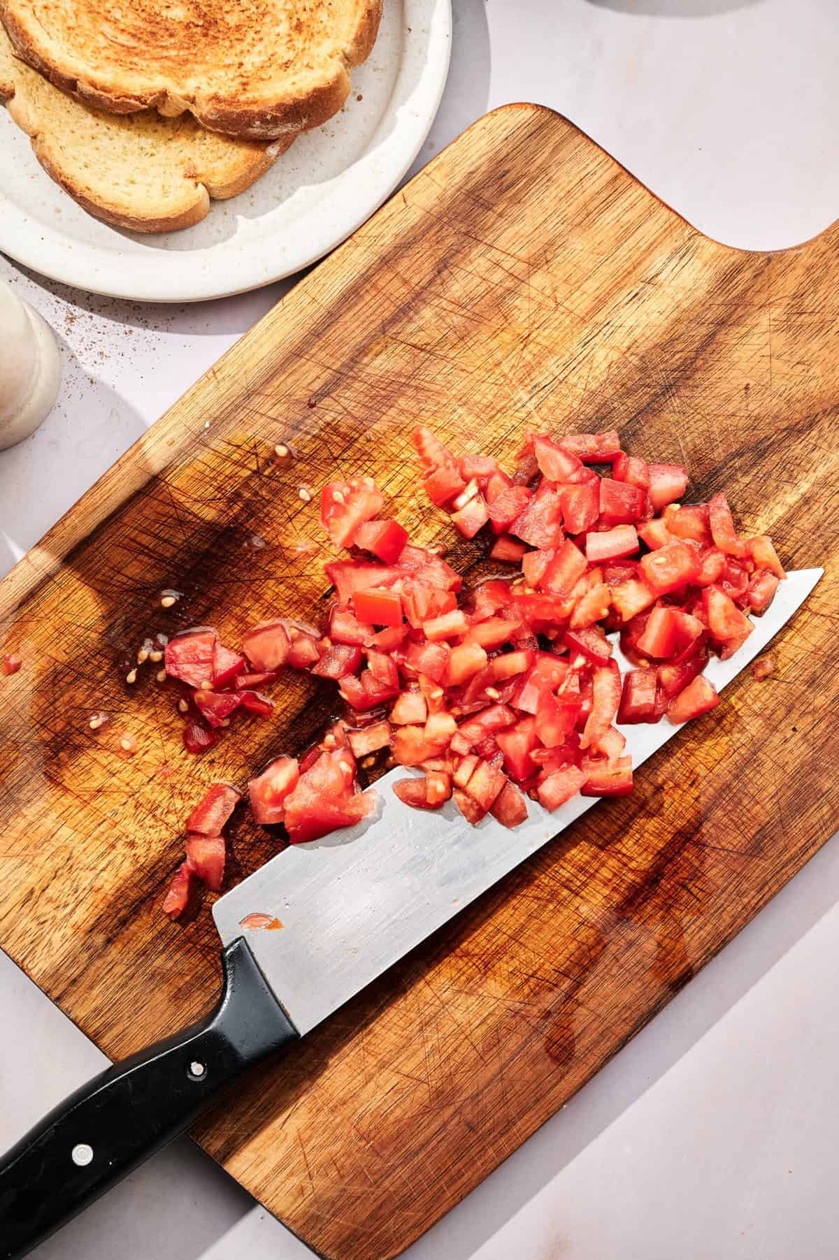 - Dice the tomatoes into small cubes.