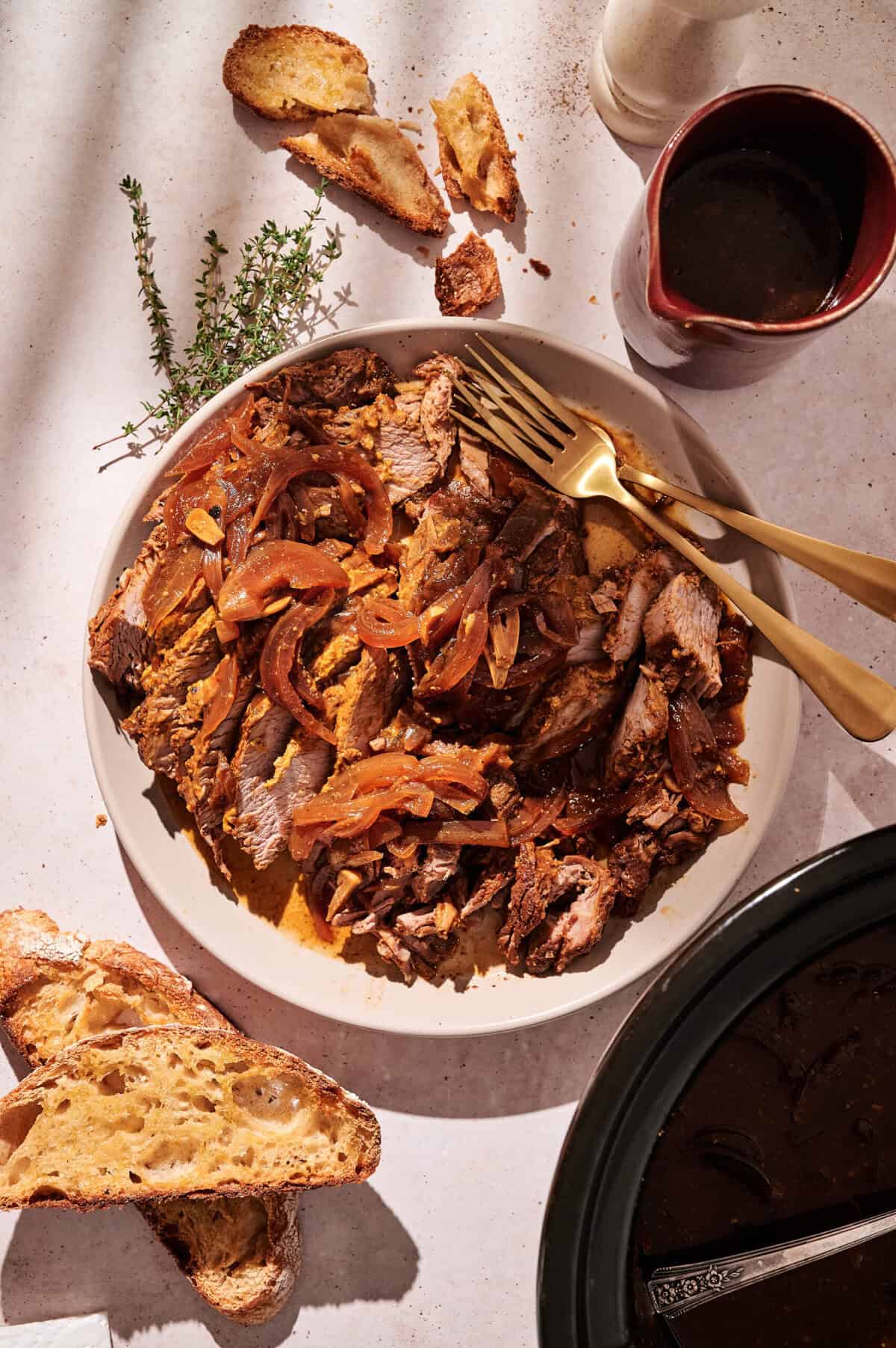 Briskets are ideal when you want something hearty that feeds a crowd. The slow cooker keeps everything hands free, so you can mingle with the guests while waiting. It’s also a good choice when you want leftovers that reheat well.