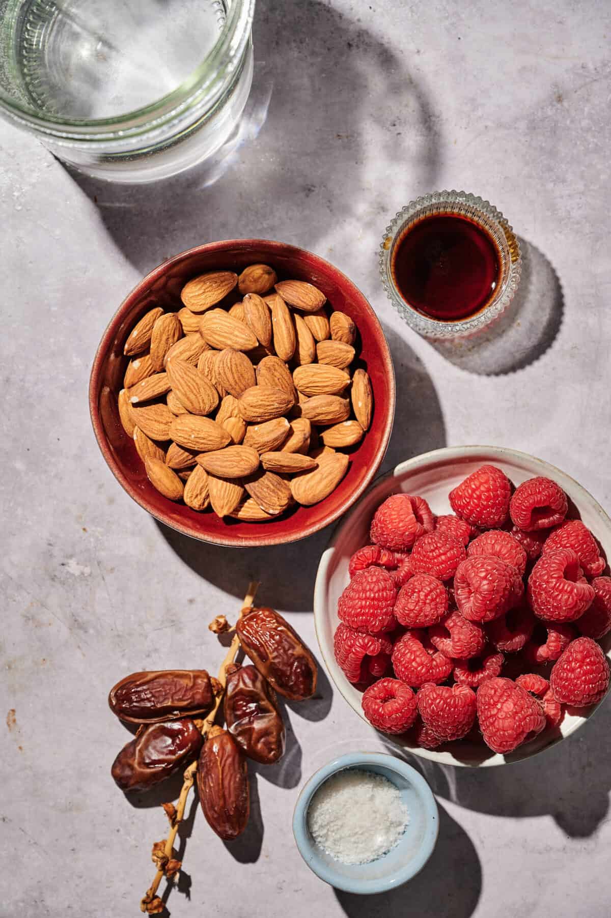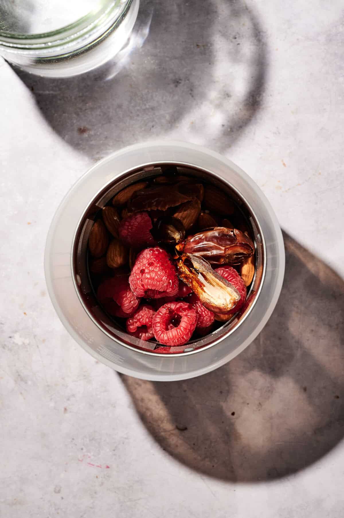 - Place almonds, raspberries, vanilla extract, and sea salt in the filter basket.