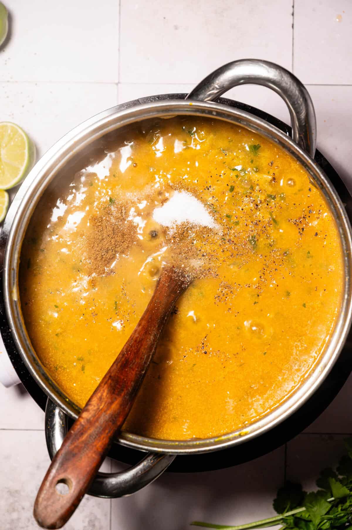 Simmer for about 35–40 minutes, stirring often. The mixture should look porridge-like and smooth.