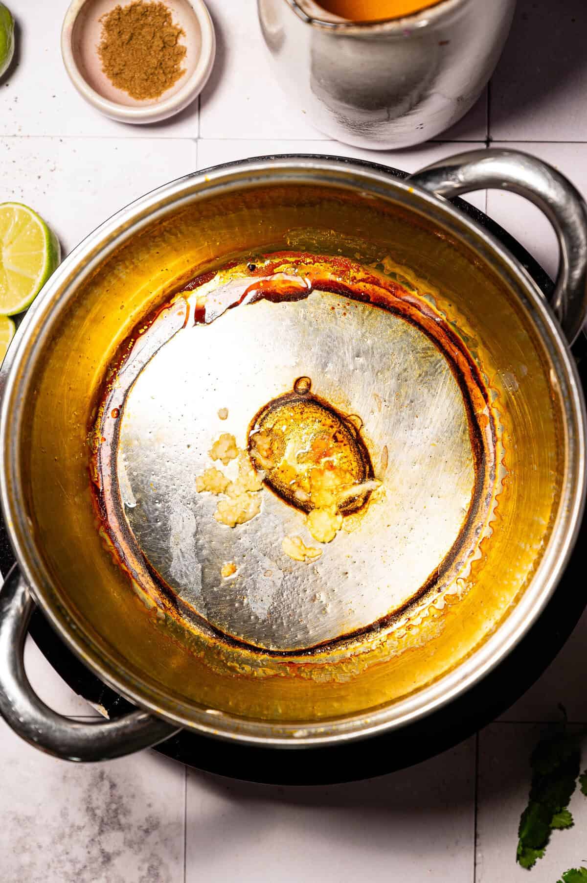 - In a medium pot, heat 1/4 cup of achiote oil over medium-low heat. Add the garlic and cook until fragrant, about 2 minutes.