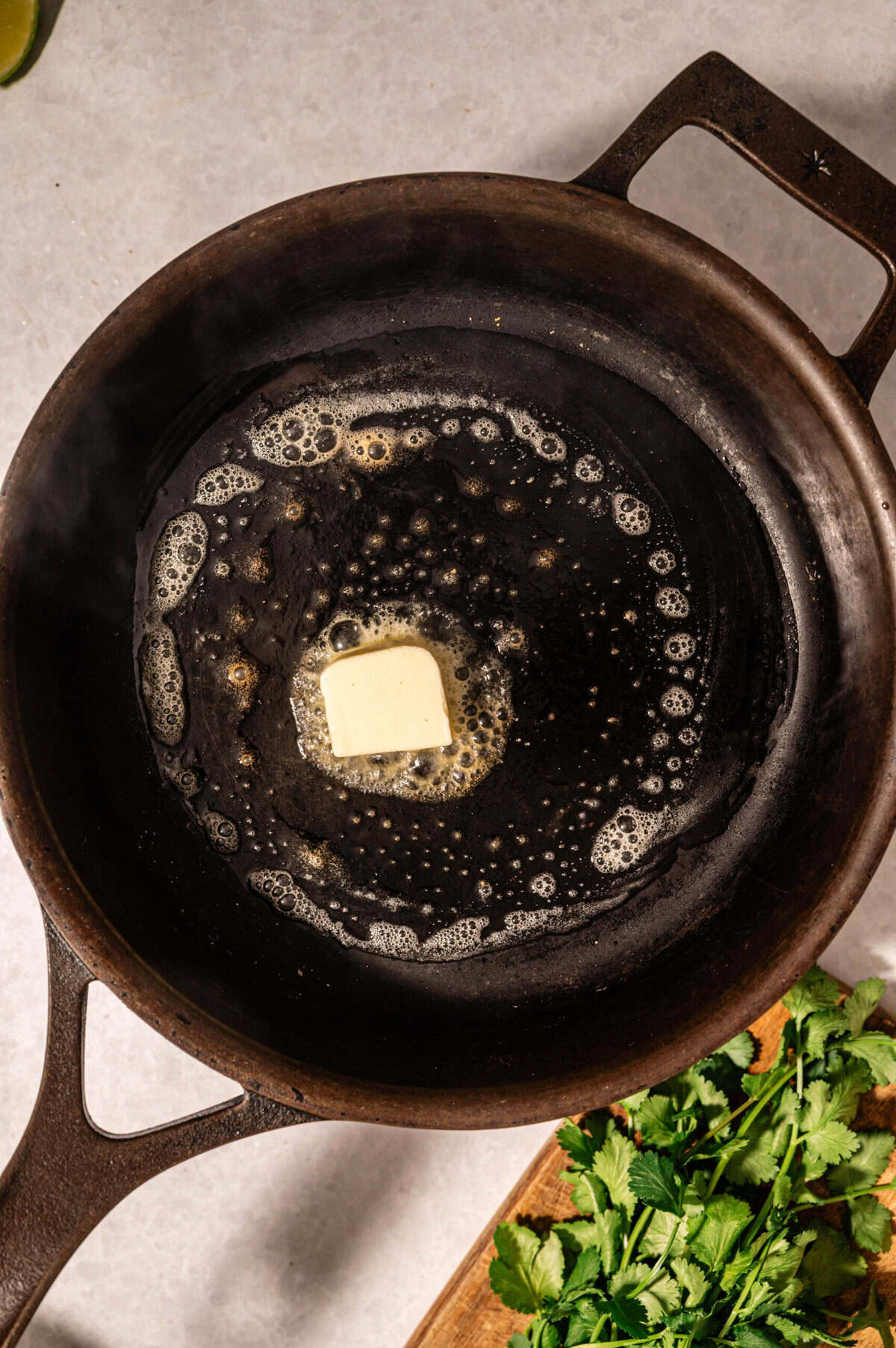 - Heat a cast-iron skillet over medium-high heat and melt 1 tablespoon of butter.