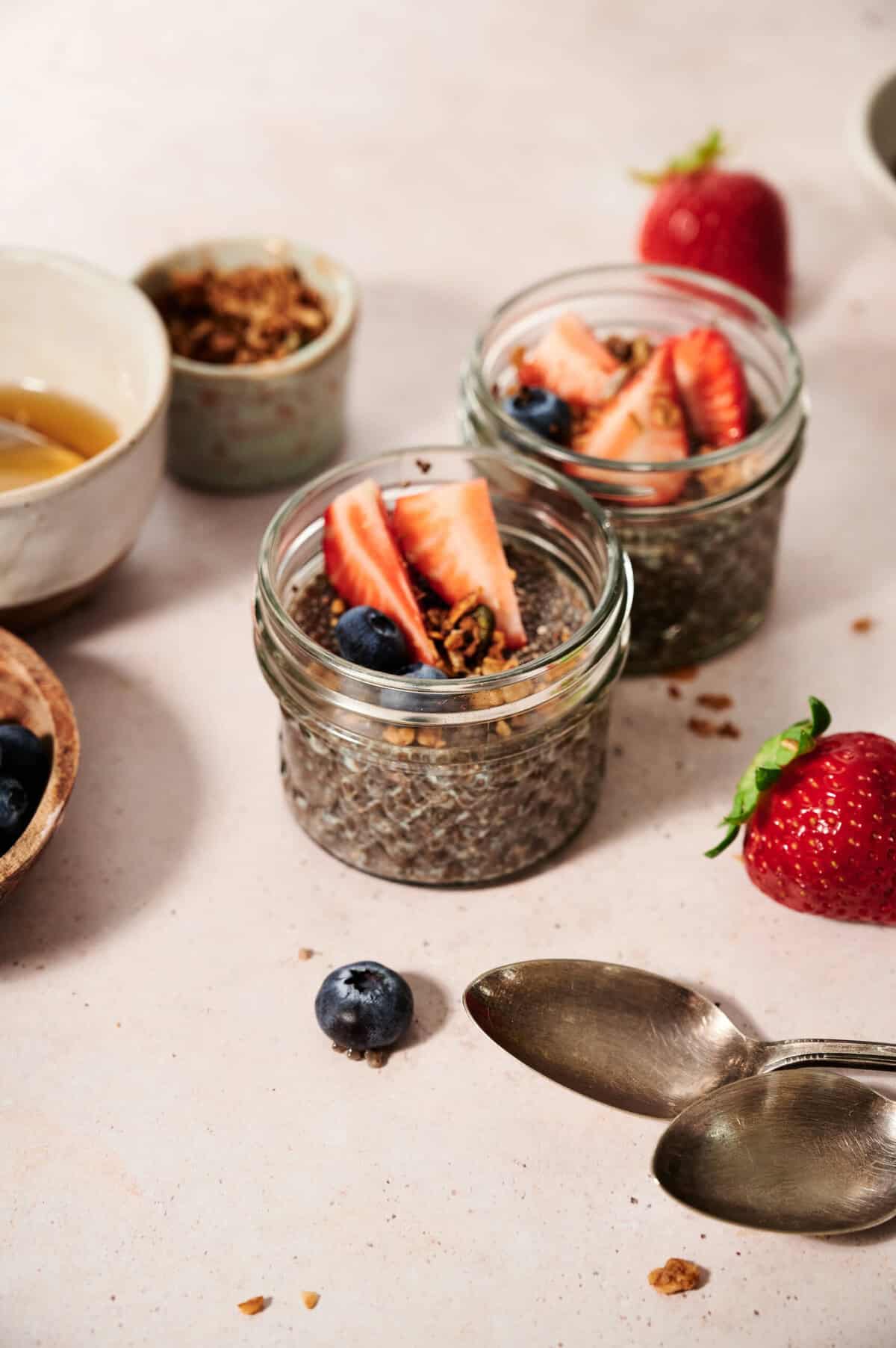 - In a medium bowl or mason jar, whisk together the chia seeds, almond milk, Manuka honey, vanilla paste, and cinnamon.